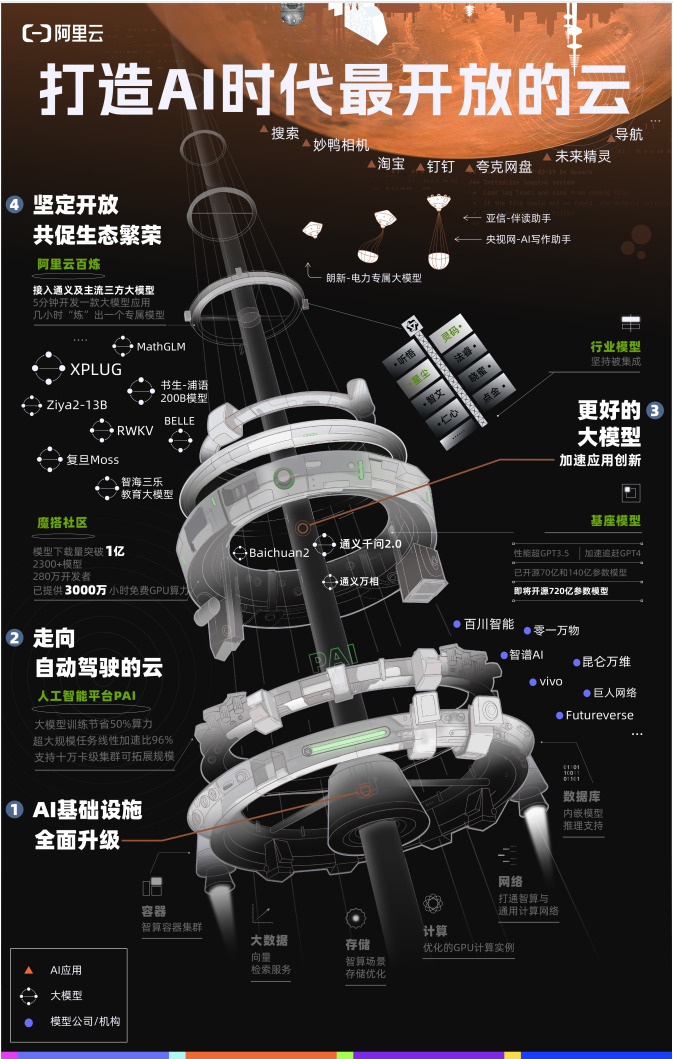 该平台集成了国表里支流优良大模子,给中国所有大学生每人送一台云办事器。开辟者可正在5分钟内开辟一款大模子使用,正在两边的配合勤奋下,大学、大学、浙江大学、上海交通大学、中国科学手艺大学、华南理工大学等高校已首批告竣合做?帮力中国青年学者和学子攀爬科研高峰。机能全球领先。并正在现场发布进展:个性化脚色创做平台通义星尘、智能投研帮手通义点金、AI阅读帮手通义智文等初次表态;加快数据阐发和人工智能立异大模子正激发千行百业的新一轮立异,目前,吸引280万名AI开辟者,阿里云已开源通义千问7B、14B版本。但大模子利用的高门槛把大部门人挡正在了手艺海潮之外。“推进中国AI生态繁荣,”大模子是本轮AI海潮的焦点手艺,通义千问2.0正在10个权势巨子测评中全面超越GPT-3.5和L2,